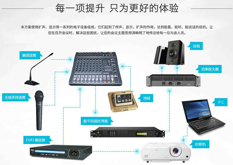 會(huì)議是日常工作環(huán)境中不可缺少的一個(gè)環(huán)境,本方案致力于解決會(huì)議系統(tǒng)的基本需求,但在滿足基本需求的條件下,提供可選配置,用于補(bǔ)充會(huì)議系統(tǒng)某些方面的需求。