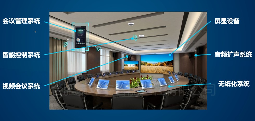會(huì)中:智能控制系統(tǒng)自動(dòng)調(diào)節(jié)環(huán)境與設(shè)備,屏顯、音頻、視頻系統(tǒng)協(xié)同運(yùn)轉(zhuǎn),無紙化終端實(shí)現(xiàn)資料實(shí)時(shí)交互,讓會(huì)議過程流暢高效。